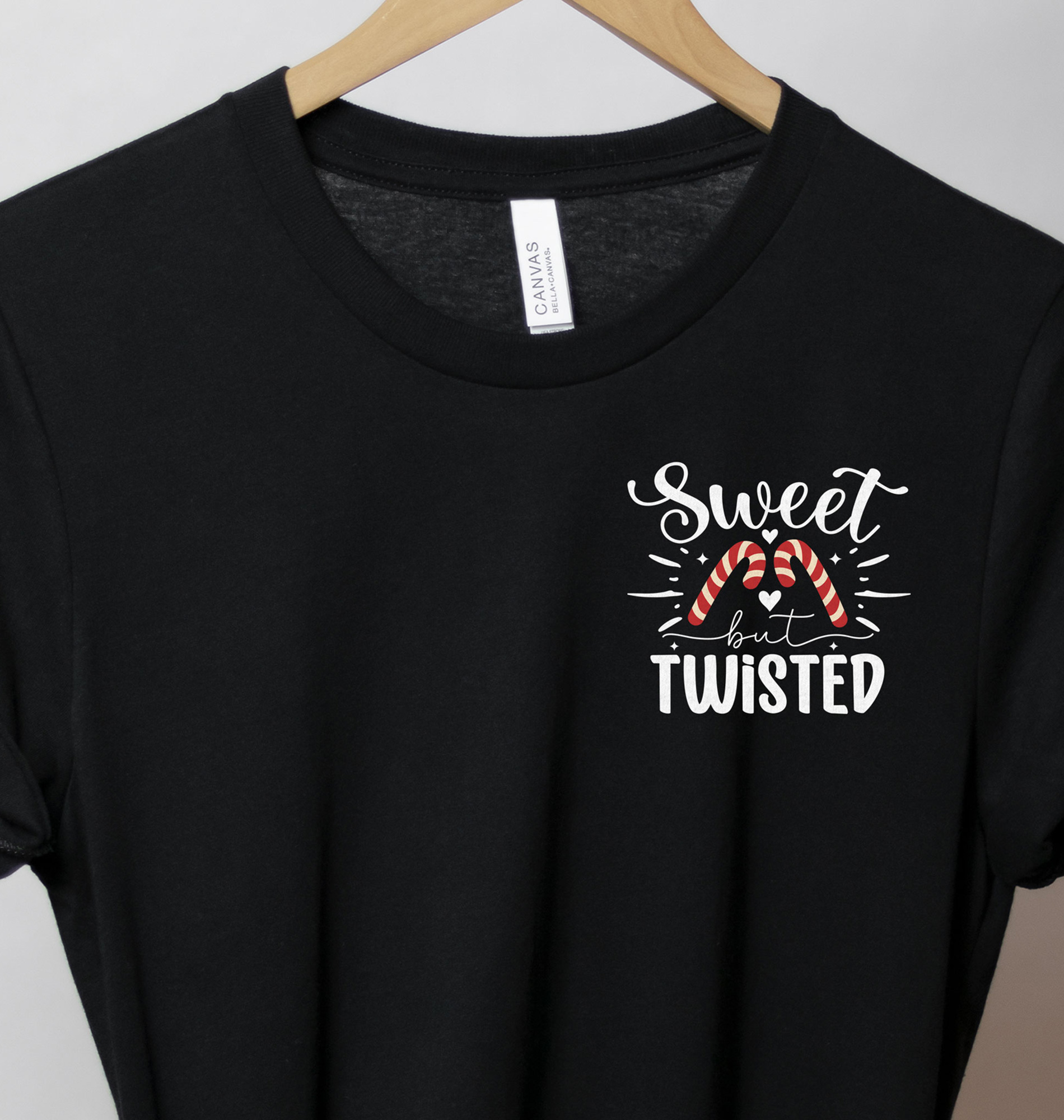 Step into the festive season in style with our Sweet But Twisted Christmas Holiday T-Shirt. This unique holiday t-shirt has been designed to add a fun twist to your wardrobe, making it one of the must-have Christmas holiday t-shirts of the season.